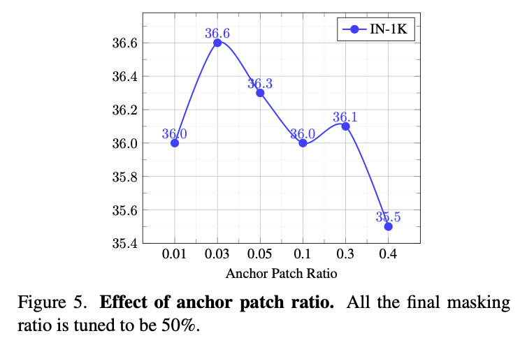 실험 결과에 따르면, anchor patch의 비율이 작을수록 더 나은 성능을 보였다. 이는 anchor patch의 선택에서 randomness가 줄어들기 때문에 모델이 학습에 사용할 reference point들이 더 안정적으로 형성되어, clustering 성능이 향상되었기 때문이라고 해석된다. 그러나 anchor patch의 비율이 지나치게 작아지면 similarity threshold 역시 너무 낮아져 clustering 품질이 저하될 수 있기 때문에, 적절한 균형이 필요하다.