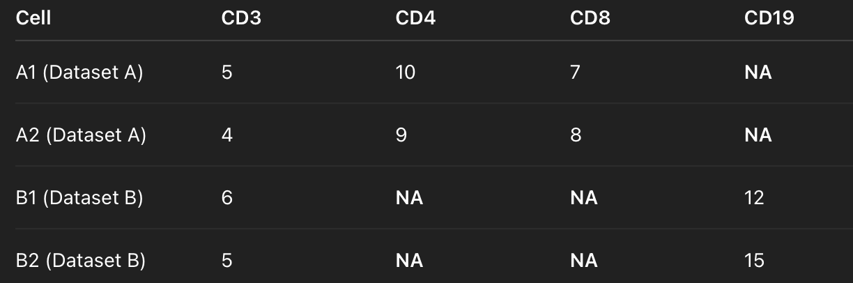 - CITE-seq 데이터: 일부 단백질만 측정됨 → 측정 안 된 단백질 발현을 보완(impute)